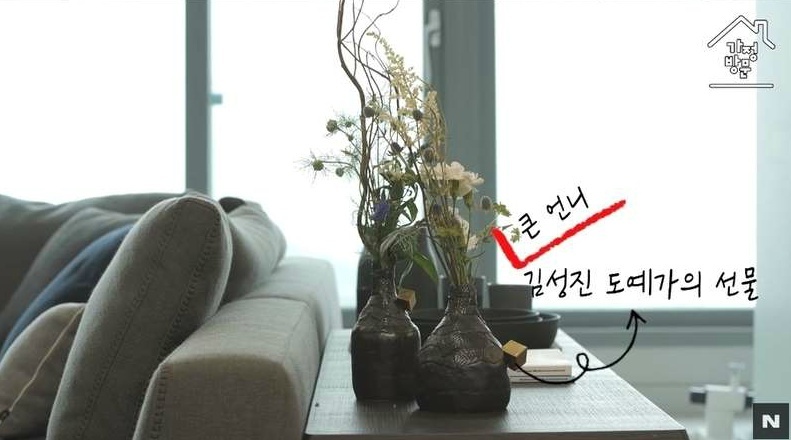 김성령은 한강을 내려다보며 "우리집은 풍경이 전부"라며 "실제로 약속 있을 때 도로 교통상황을 한 번 보고 그 시간에 맞춰서 나가곤 한다"라고 말했습니다. 또 김성령은 거실을 둘러보다 "큰 언니가 도예가다. 큰 언니 작품이다. 특별히 꽃을 꽂아봤다"고 친언니의 도예솜씨를 자랑한 뒤