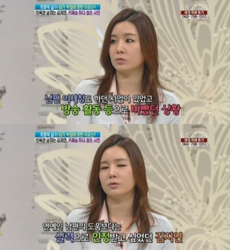 또한 김지연은 "미스코리아 출신이라는 사실이 스트레스가 된다. 조금만 살이 찌면 미스코리아가 왜 저렇게 살쪘어? 라는 말을 듣는다"며 "내가 미스코리아로 선발된 건 오래 전의 일이고, 지금의 난 나이도 들었고 출산도 했다"고 고충을 토로해 눈길을 끌기도 했습니다.
