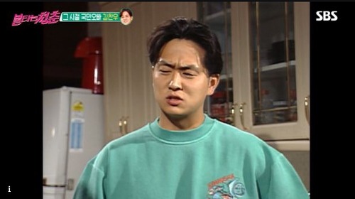 청춘스타로 불리는 김찬우는 1991년 드라마 <사랑이 뭐길래>에서 극중 하희라 막내 동생으로 나와 큰 인기를 끌게 됩니다.