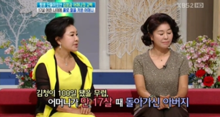 배우 김청의 어머니는 17살 고등학생 때 김청의 생부를 만나 임신을 해 미혼모인 상태에서 사생아인 김청을 낳았습니다. 하지만 아버지는 그녀가 100일째 되던 날 김청을 보러 오던 길에 교통사고를 당해 갑자기 돌아가셨다고 하는데요.