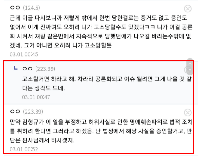 이어 "김형규랑 같은 반인 적도 없고 친분같은 건 있지도 않았음을 먼저 밝힌다"며 "내가 김형규한테 폭행을 당한 장소는 학교가 아닌 외부였다. 그 이유는 내가 김형규를 쳐다봤다는 것. 옆에는 여자친구로 추정되는 여성분이 있었고, 지금 생각해보면 전형적인 양아치들의 약자에 대한 폭력이었다. 오죽했으면 나한테 뺨을 때리고 욕설을 하는 걸 여성분이 말리셔서 그 자리를 떴을까"라고 주장했습니다.