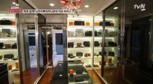 신주아는 집이 어마한 대저택으로 알려졌으며 이미 방송으로 알려진 신주아 집은 수영장과 극장 게스트하우스를 갖췄고 특히 명품 가방이 진열된 신주아의 드레스룸은 정말 대박이였다고 한다.