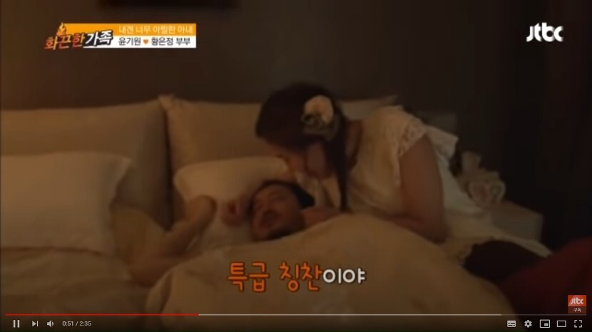 9살 나이가 적은 황은정씨는 애교를 잔뜩 부리며 남편 윤기원씨에게 무엇이든 ok 하는 모습을 보여준 것 같습니다.