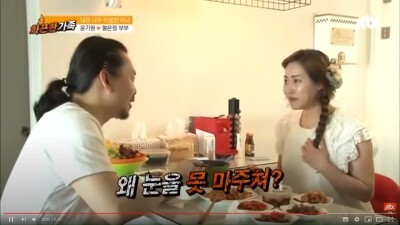 윤기원씨는 아침에 일어나서 밥을 먹는데 황은정씨가 칭찬과 인정의 말을 갈구하자 영혼없는 칭찬으로 귀찮아하는 모습이 역력햇는데요~