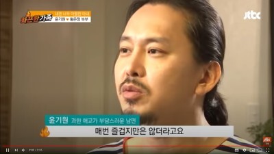 아무래도 세대차이가 나는 나이차이기는 하지만 아마 서로의 그런 모습에 크게 반해서 결혼도 하셨을텐데 권태기가 오면서 애교도 7첩 반상도 부담스러워하는 윤기원씨였습니다.