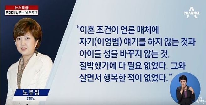 그런데 남편 이영범의 외도 상대는 노유정도 잘 알고있는 여자연기자라고 해서 더욱 큰 놀라움을 주었습니다.