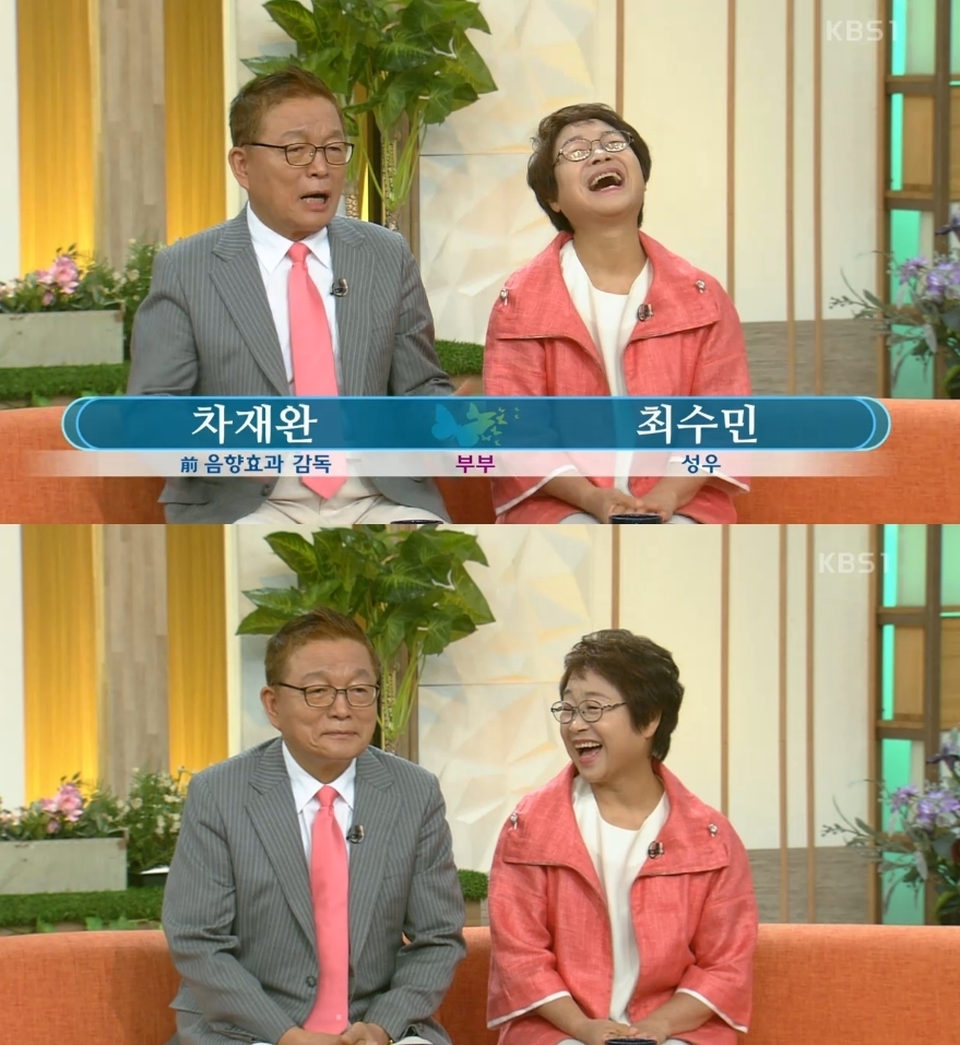 최수민과 남편 차재완 두 사람은 KBS 성우실에서 성우로 활동하면서 처음 만나게 되었다고 하는데요, 1969년 최수민이 성우로 입사했을 당시 그보다 1년 선배였던 남편 차재완은 이미 성우실에서 분위기 메이커로 명성이 자자했다고 합니다.