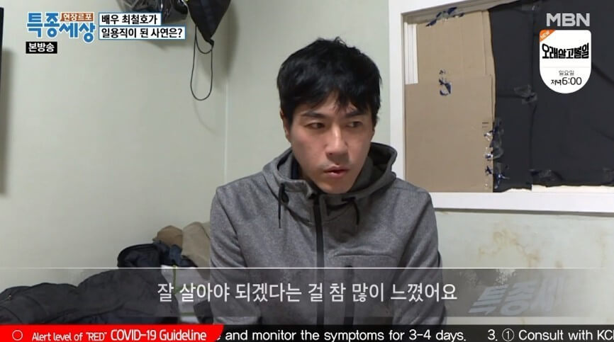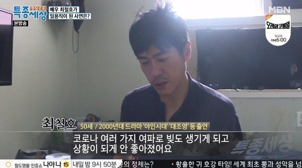 이후 최철호는 여러 드라마에서 간간이 얼굴을 보였지만 눈에 띄는 히트작이나 관심을 가질만한 배역을 보이지는 못했는데요. 새로운 도전을 위해 사업을 하다 실패했고, 결국 택배 상하차 일용직을 하며 생계를 유지하는 상황까지 직면하게 된 셈입니다.