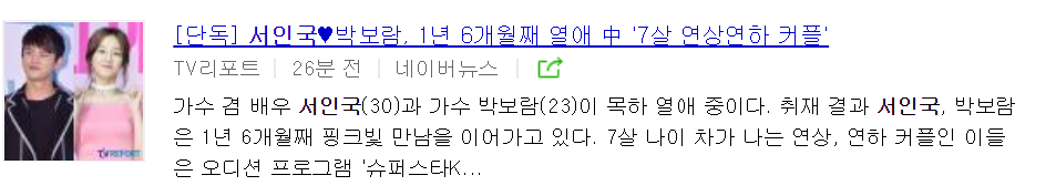 6일 TV리포트는 슈스케 출신가수인 서인국과 박보람이 열애중이라는 기사가 보도되었는데요.