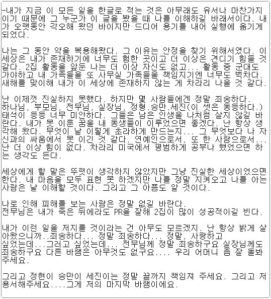 - 서지원 유서 전문