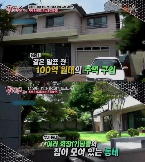 결혼 후 송중기 송혜교는 서울 용산구 이태원에 신혼집으르 마련했었는데요, 송혜교의 재산은 현재 송혜교가 가지고 있는 건물이 강남구 삼성동에 위치한 한국의 비벌리힐즈라 불리는 고급주택단지를 1채 보유하고 있구요, 매매가는 약 90억원이라고 합니다.
