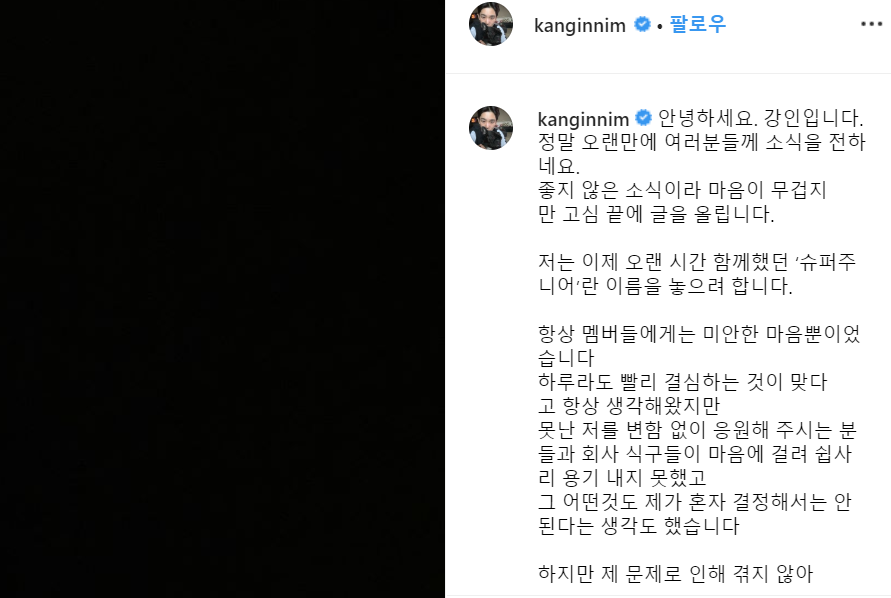 [강인 인스타 슈퍼주니어 탈퇴 글]