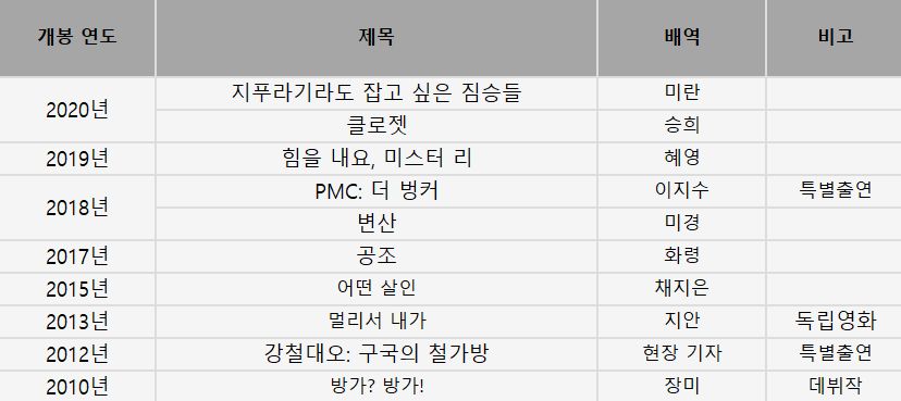 영화 공조에서는 현빈의 아내 역활로 나왔다.