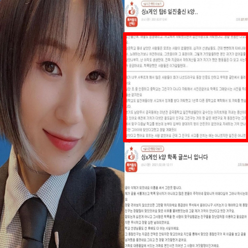 해당 글은 현재 삭제된 상태인데요, 글쓴이는 8일 "이름을 써서 글이 삭제된 듯하다"며 또 다른 글을 게시했습니다. 글쓴이는  "제가 글을 서툴게 쓰고 학폭 피해 당사자가 아니라는 이유로 많은 분이 자작이라고 하시는데 정말 겪어보지 않았다면 그런 말 하지 마시라"며 "잘되는 게 싫은 게 아니고 그 사람은 힘없는 친구들을 장난감처럼 이용하고 필요 없어지면 무시한 날라리였다"라고 재차 강조했습니다.