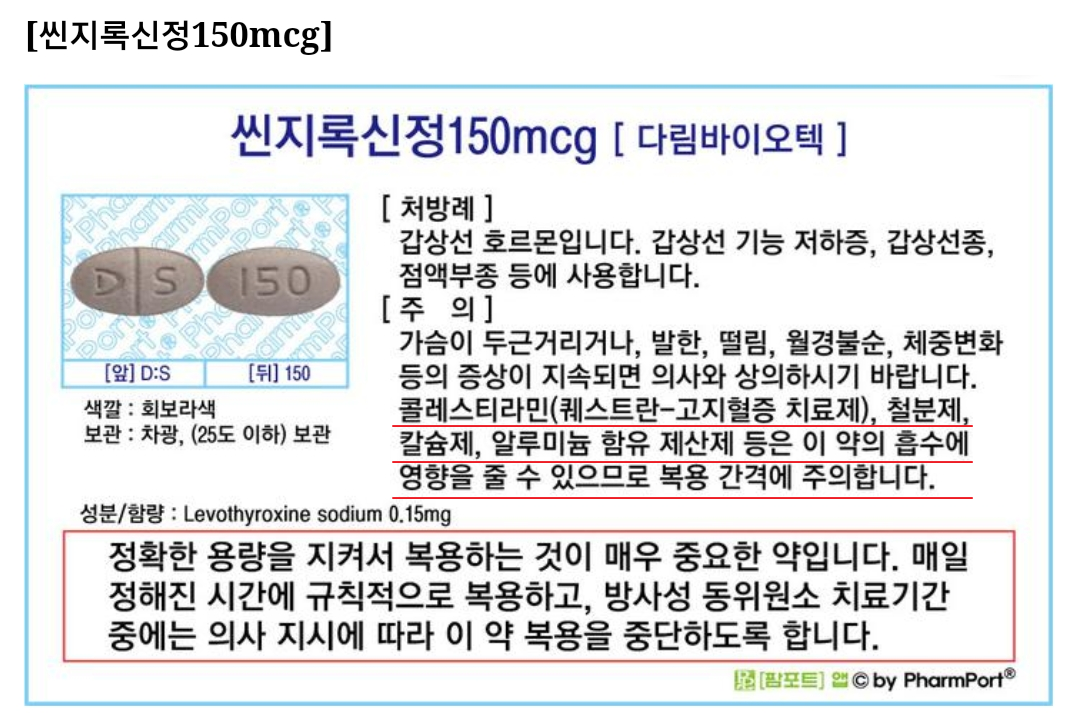 | 3. 씬지로이드(씬지록신)는 비타민제(영양제)와 같이 복용하지말자! 최소 4시간이상 간격을 유지하자! |