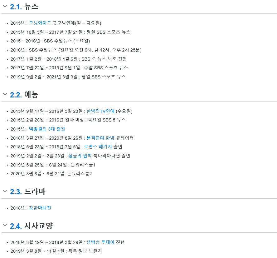 <김윤상 아나운서 출연 뉴스, 예능, 드라마, 시사교양>