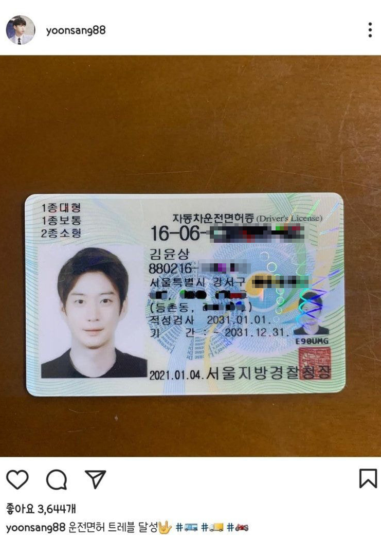 김윤상 아나운서는 과거 1종 대형, 1종 보통, 2종 소형 운전면허를 땄다고 인스타그램에 올리기도 했습니다.
