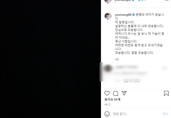 김윤상 아나운서는 자신의 인스타그램을 통해서도 음주운전 사건과 관련, "변명의 여지가 없다. 제 잘못이다"라며 "실망하신 분들께 다 너무 죄송하다"고 했습니다.