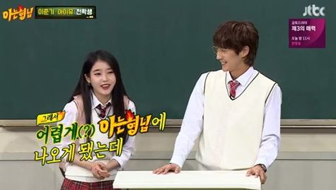 과거, 강호동은 아이유와 우연히 중국 공항에서 만났고, 그 당시 아이유가 먼저 인사를 해오며 '아는형님'을 잘 보고 있다고 했다고 말했다. 강호동은 "그때 무언의 눈빛으로 '아는형님'에 출연한다고 약속했다"고 너스레를 떨었다.