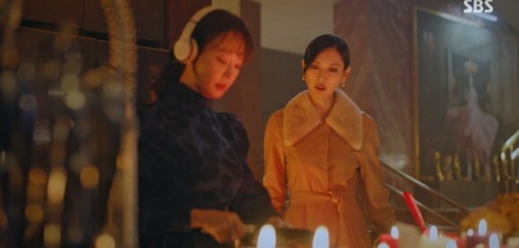 이날 주단태와의 여행에서 돌아 온 천서진은 진분홍이 음식을 하고 있자 놀란 모습을 보였습니다.