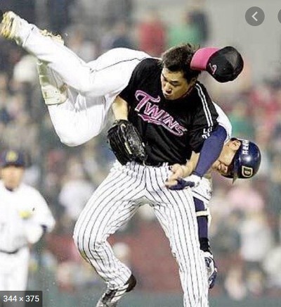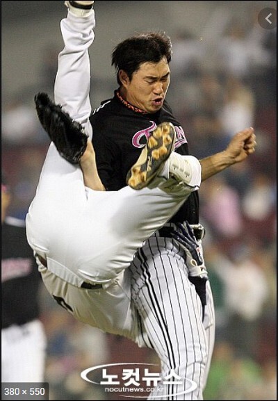 이 때 봉중근 선수가 달려드는 안경현 선수를 몸뒤로 넘겨버리면서 백바디드롭이라는 레슬링 용어까지 등장하게 됩니다.