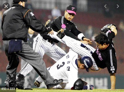 미국식 야구에 익숙한 봉중근이 경기가 안 풀리자 고의적으로 머리쪽으로 투구를 했다고 심판들은 판정했고 이에 주먹질하러 달려온 안경현 선수 둘 다 퇴장을 하게 되었습니다.