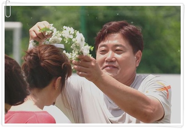 양준혁은 행복한 표정으로 화관을 씌워주며 애정을 표현했다. 김용만, 안정환 등 동료들은 "양준혁에게 이런 날이 오냐"며 박수로 환호했다.