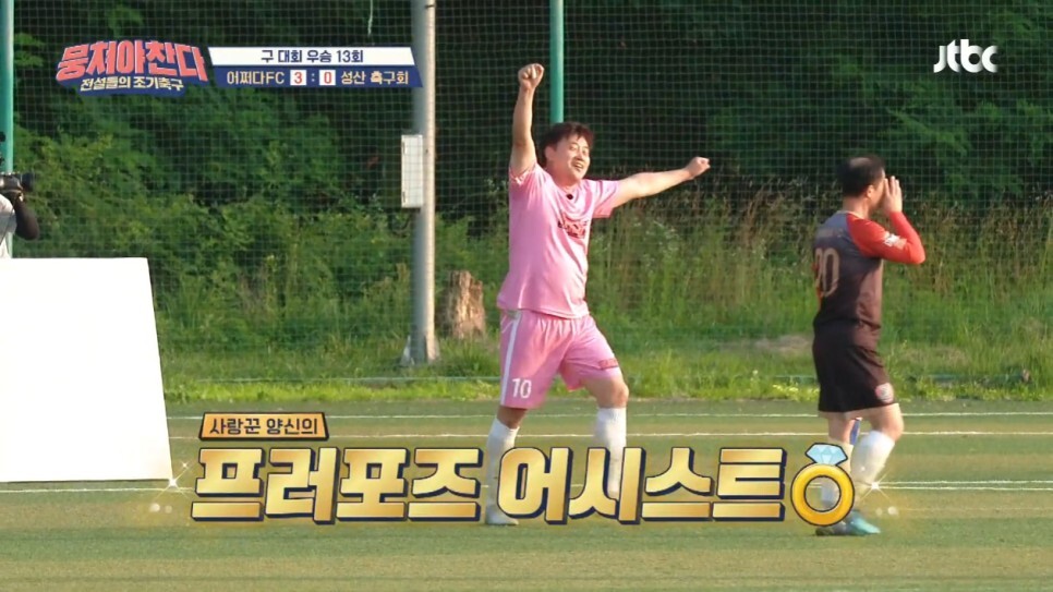 19일 방송된 JTBC `뭉쳐야 찬다`에서는 어쩌다FC가 상암 DMC와의 경기에 이어 성산 축구회와의 경기를 준비하며 그 전에 정형돈은 양준혁 선수를 언급하며 한 가지 소식을 전했다.
