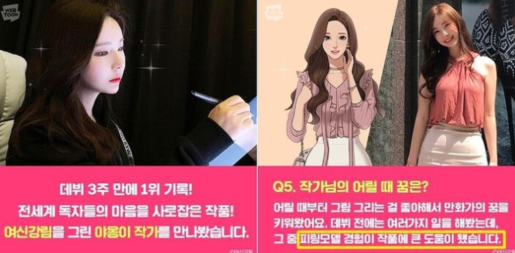 네이버 웹툰의 화요일 최강자, '여신강림'의 야옹이 작가에 대한 포스팅이다.
