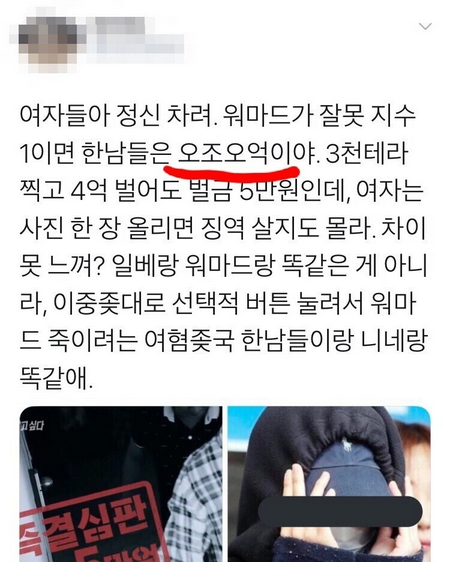 그렇기에 오조오억 남혐 관련해서는