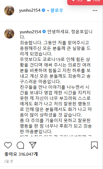 유노윤호 사과문 전문