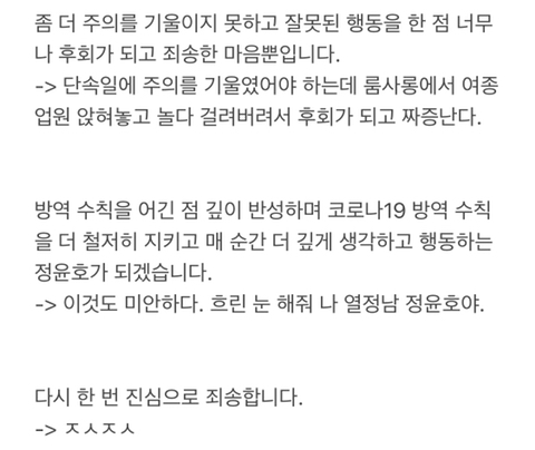그가 올린 사과문 내용에서는