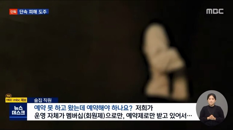 상대로 영업하던 회원제 불법 술집이어서