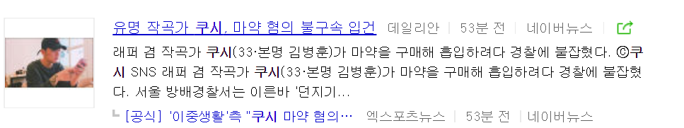 유명 작곡가로 쇼미더머니에도 출연했던 쿠시가 마약 혐의로 불구속 입건되었다고 하네요.