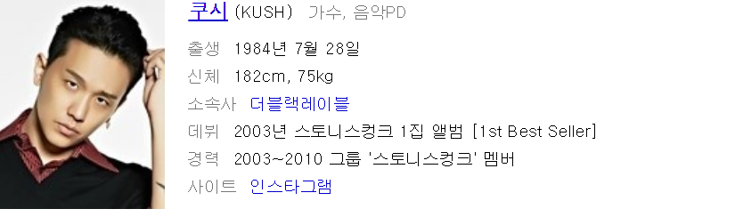 쿠시는 2003년 스토니 스컹크의 1집 수록곡인 <Best Seller>로 데뷔했는데요.