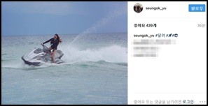 유승옥이 수상 스키 실력을 뽐내 화제를 모았는데요. 유승옥은 최근 인스타그램에 "달려"라는 문구와 함께 사진을 게재했습니다. 공개한 사진 속 유승옥이 바다에서 수상 스키를 타고 있다. 선 채로 멋지게 질주해 팬들의 눈길을 사로잡았다고 하는데요.