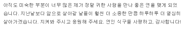 이어 "결혼식은 코로나 시국으로 사실상 어려운 부분이 많아 아쉽지만 당장은 생략하고 이번 달 안에 혼인신고를 하려고 한다"며 "새로운 인생 2막이 시작되는 특별한 날인 만큼 무언가 의미 있는 일을 할 수 있지 않을까 고민하다 함께 하기로 한 마음을 작게나마 다른 의미 있는 곳에 나누어 주기로 뜻을 모았다"고 밝혔습니다.