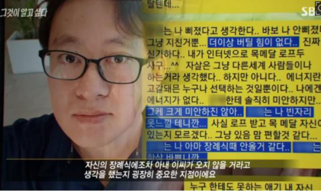 특히 윤상엽 씨가 생전 남긴 글에는 자신이 죽어도 아내는 장례식에도 오지 않을 거라는 내용이 담겼는데요. 한 전문가는 “아내가 어떤 도리를 할 거라고 기대를 안 하는 상태였다. 자신과 혼인을 하긴 했으나 돈이 없으면 얼마든지 멀어질 수 있는 사이라는 걸 알고 있었던 것 같다. 하지만 저항하지 못했던 것”이라고 분석했습니다.
