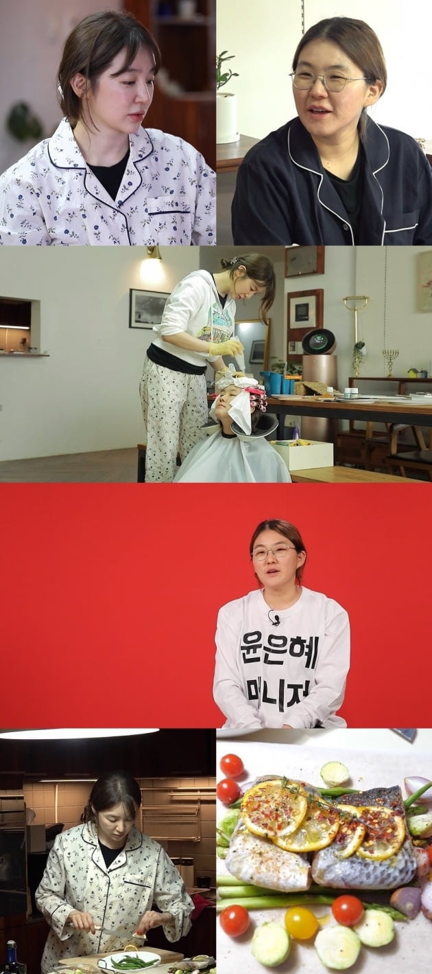 연예계 금손으로도 유명한 윤은혜는 생선구이, 스테이크, 샌드위치를 능수능란하게 뚝딱 만들더니, 급기야 매니저에게 직접 파마를 해주며 황금손 끝판왕 면모를 드러내기도 했습니다.