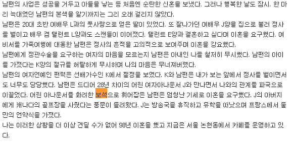 그러면 외무고시 2부의 특혜 문제, 외교관 아들들의 철밥통 문제를 대충 마무리 짓고, 탤런트 박선영의 결혼 생활로 되돌아가서, 원래 박선영은 남편과 연애를 7년 동안이나 하게 됩니다. 원래 20