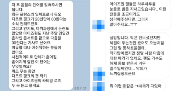 장성규가 공개한 메시지 캡처 사진에 따르면 한 팬은 "아이즈원 팬들은 하루하루를 눈물로 밤을 지새고 있다. 이런 팬들을 조금이라도 생각해주신다면 그러지 말아 주세요", "실망입니다. 마지막 콘서트 안 보셨겠지만 혜원이 우는 것만 봤어도 오늘처럼 그런 말 못 하셨을 텐데. 작가 탓이겠지만 정말 사람 마음에 대한 배려가 없네요. 팬도 가수도 해체 통보받은 지 겨우 일주일째인데 악의가 느껴질 정도군요" 등의 메시지를 보냈다.