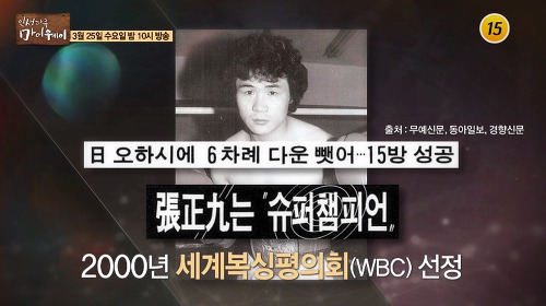 장정구는 1980년대 세계무대를 평정했던 살아 있는 전설의 복서입니다. 유명우와 함께 1980년대 프로복싱이 대흥행을 했을 때에 한국인 최초로 WBC 명예의 전당에 입성하는 쾌거를 이루었는데요.