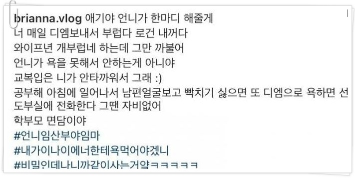 불법 퇴폐업소 방문 의혹에 휩싸인 ‘가짜사나이’ 교관 로건의 아내가 심경을 밝혔다. 13일 오전 유튜브 채널 ‘vlog브리아나’ 커뮤니티 게시판에는 로건 아내가 쓴 글 이 게재됐다.