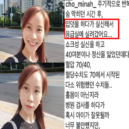 갑작스러운 결혼과 임신을 발표했던 쥬얼리 출신 조민아가 입덧 중 실신해 응급실에 실려갔다는 소식을 전했습니다.