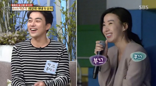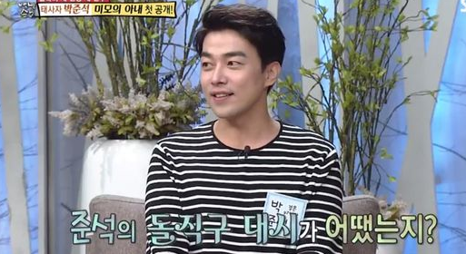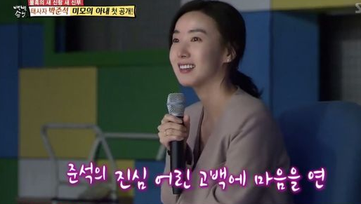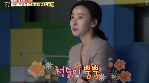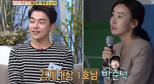 이날 방송에서는 박준석의 아내가 공개됐다. 박준석의 녹화를 지켜보기 위해 아내도 함께 스튜디오에 온 것. 그의 아내는 연예인 못지 않은 청초한 미모로 보는 이들의 시선을 사로잡았다.