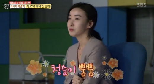 이날 방송에서는 박준석의 아내가 공개됐다. 박준석의 녹화를 지켜보기 위해 아내도 함께 스튜디오에 온 것. 그의 아내는 연예인 못지 않은 청초한 미모로 보는 이들의 시선을 사로잡았다.