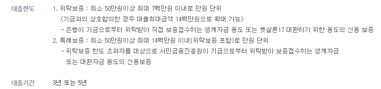 - 특례보증 : 최소 50만원 이상 최대 1400만원 이내로 책정