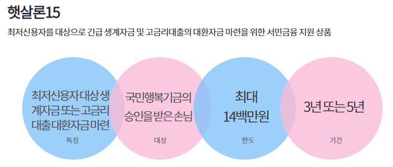 하나은행 햇살론15는 소득이 적고 신용도가 낮아 어쩔 수 없이 고금리 대출을 이용할 수 밖에 없는 분들을 제도권 금융으로 포용하기 위해 만들어진 정부지원 서민대출 상품입니다.