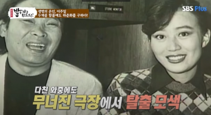 하지만 주일씨는 탈출했는데 난 엄두가 나지 않았고, 결국 주일씨의 머리를 딛고 탈출했다"고 말했는데요. 이후 이주일은 하춘화를 구출하여 병원까지 업고 뛰어가서 무사할 수 있었다고 합니다.