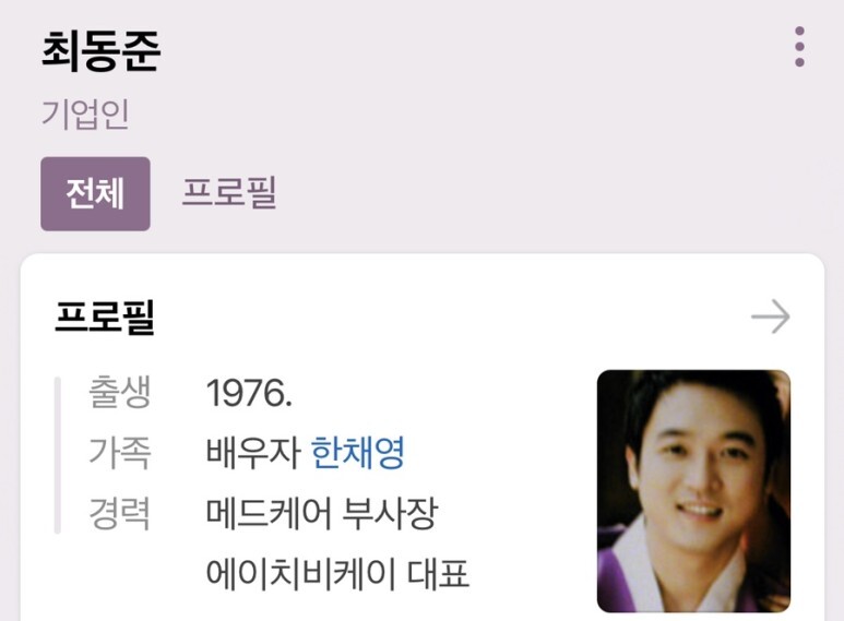 한채영 남편 최동준은 미국 UC 버클리에서 경영학을 전공 후 현재 에이치비케이 대표직을 맡고 있다.